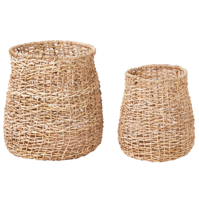 Create a warm and relaxed look in your home with this set of decorative baskets. These baskets are crafted from natural, hand-braided Abaca fibers, a durable material known for its exceptional strength and flexibility. With their organic and subtle expression, these baskets will make a stunning addition to a laundry room or bathroom. Color variances may be presented within the fiber, all forming part of the characteristics and beauty of the natural material.