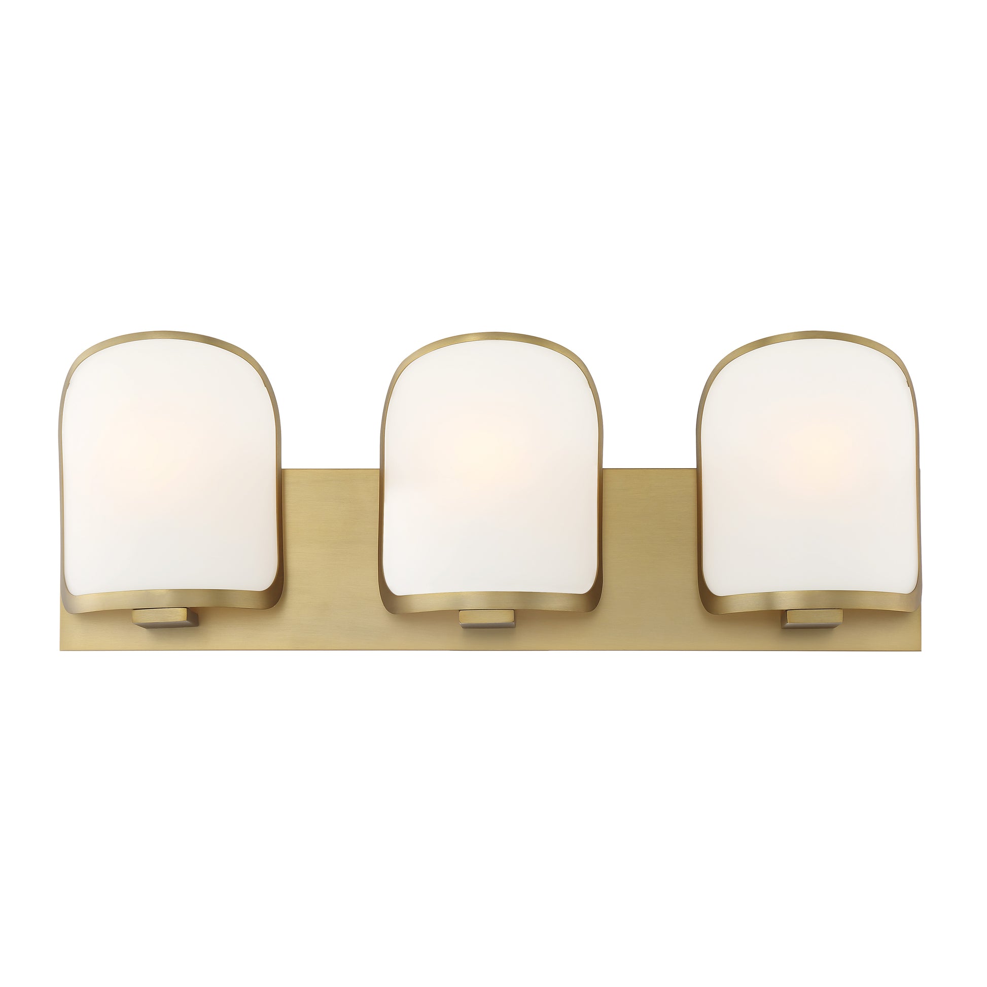 3 Light Bath in Soft Brass Finish with Etched White Glass