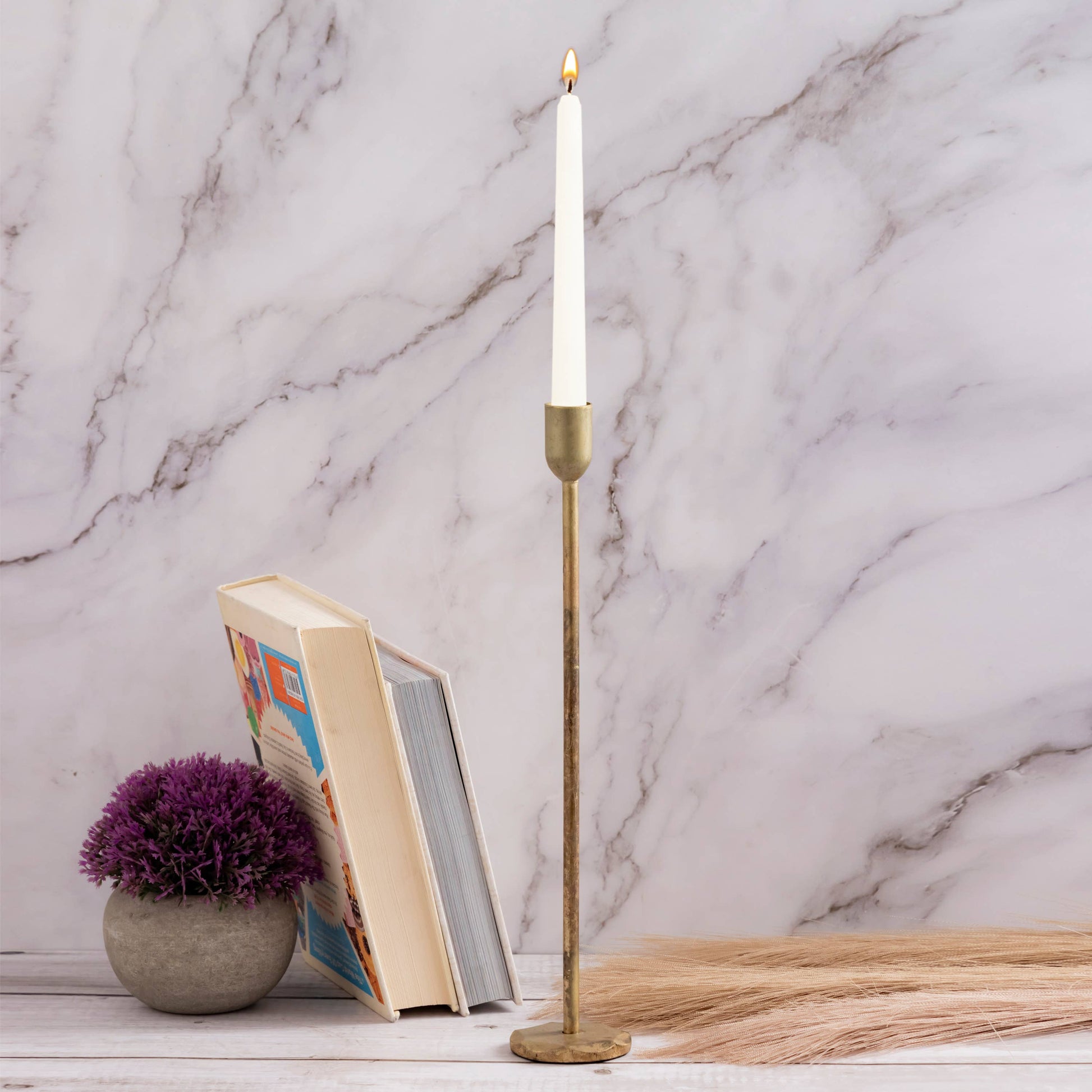 A stylish candle holder can transform any space into a cozy and inviting atmosphere. Whether elegantly minimalist or intricately designed, these decor pieces add warmth and a touch of sophistication to any room, perfect for creating a relaxing ambiance or enhancing a special occasion. This item is sold as a single candle holder only. Variation material may differ depending on distressing.