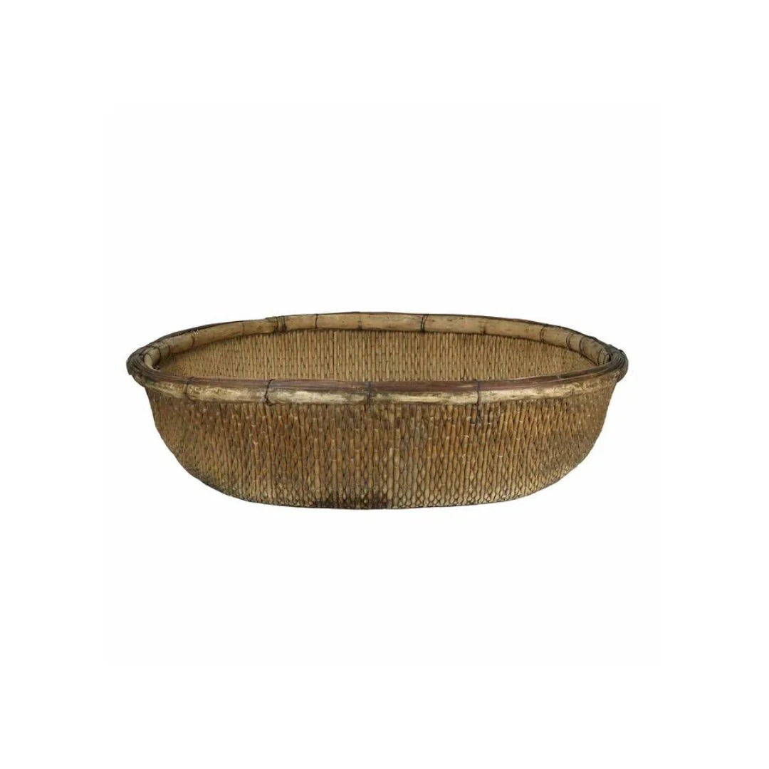 Vintage Chinese harvest basket adds instant warmth and character. Originally used to carry food and grains from field to home, these baskets are now perfect for styling on coffee tables, consoles, or even as unique wall art. Bring beautiful texture and dimension to any space.