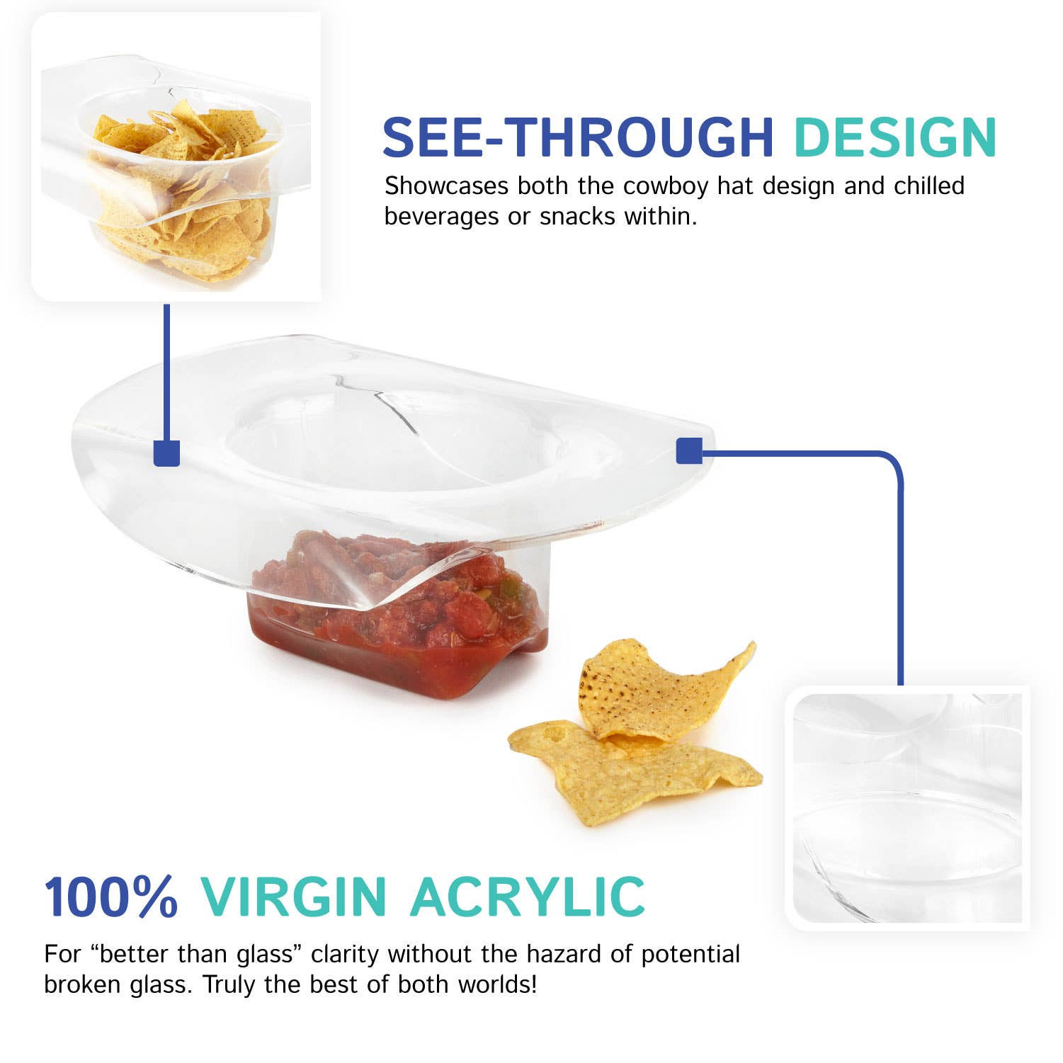 Entertain your guests with a touch of flair from our home state of Texas. These acrylic cowboy hats are perfect for keeping your wine chilled at an event or gathering. They can also be used for your favorite snacks. A great showpiece and conversation starter. Available in two sizes, these cowboy hats will bring excitement to your next event. Huang Acrylic is an American company that is focused on quality, design, and style for the discerning customer since 1978.