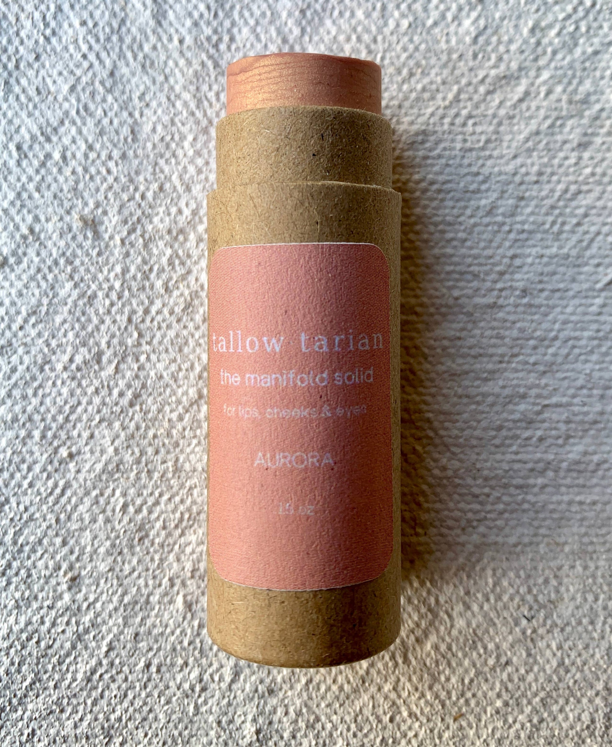 These deeply hydrating, highly pigmented lip & cheek solids come in a manifold of colors for you to have a lot of fun with. They contain the same beautiful skin nourishing properties as our tallow-based Over All Solids, with the added benefit of gorgeous color in an eco-friendly push up tube for easy application.